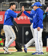 박진만 감독 ‘김재윤 수고했어’[포토]