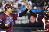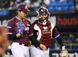 하이파이브 나누는 박정훈-김건희 배터리[포토]