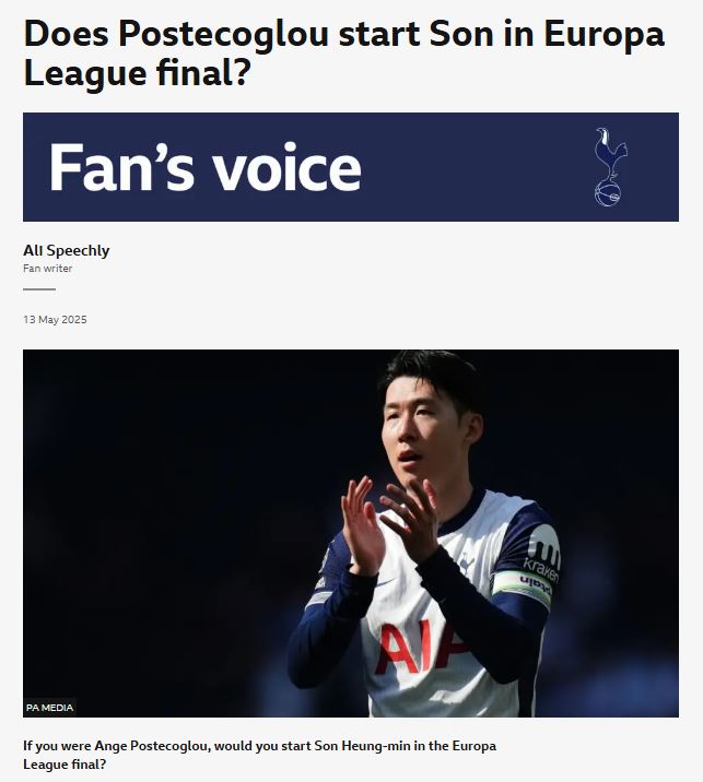 "손흥민 선발 출전, 능사 아냐"… 유로파 결승 앞두고 BBC도 보낸 '경고의 메시지'