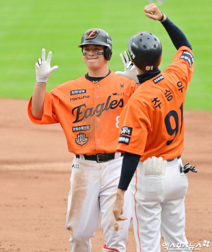 이래서 '국민거포' 밀어냈구나…'연봉 4500만원' 외야수 대반란! 폰세 상대 홈런 치더니, 2차전 3안타 '쾅쾅쾅'