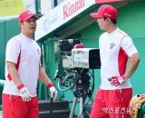 최정-김성현 '폭염에 숨이 턱'[포토]
