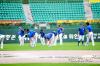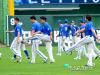 '빗물 고인 그라운드, 몸 푸는 삼성 선수들'[포토]