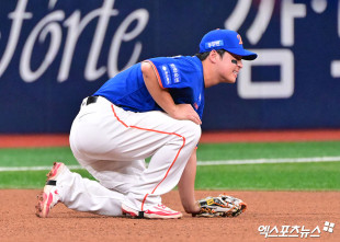 류현진 ‘조금 늦은 베이스커버’[포토]