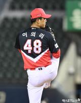 이의리 '홈런 허용에 아쉬운 미소만'[포토]