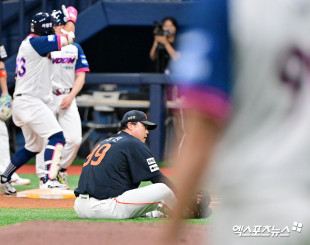 류현진 ‘한 번에 못잡고’[포토]