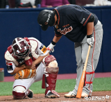 헛스윙한 노시환의 배트에 맞는 이지영[포토]