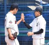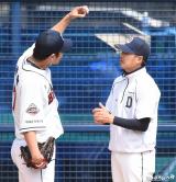 이야기 나누는 권혁-김원형 코치[포토]