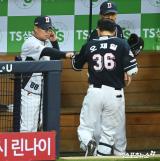 김태형 감독 '오재일과 주먹 맞대며'[포토]