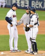 라이트 '박세혁 향해 사과'[포토]