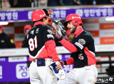 이범호 감독 '위즈덤 홈런 축하해'[포토]