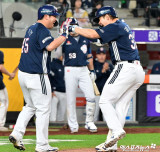 김재환 '김기연과 기쁨의 하이파이브'[포토]