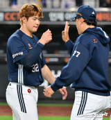양의지와 대화나누는 이승엽 감독[포토]