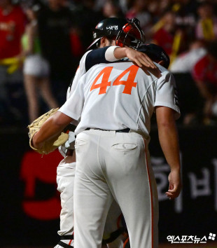 최재훈 ‘김서현을 토닥토닥’[포토]