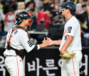 김서현-최재훈 ‘승리 세리머니’[포토]
