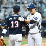 박민우 '허경민과 반가운 인사'[포토]