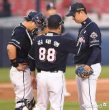 김태형 감독 '마운드 직접 방문'[포토]