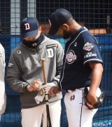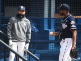 알칸타라와 이야기 나누는 김원형 코치[포토]