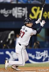 '펜스 살짝 넘기는 두산 박건우의 타구'[포토]