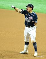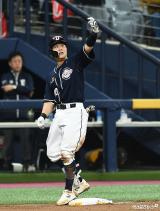 박세혁 '적시 3루타 치고 셀카 세리머니'[포토]