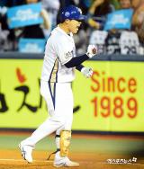 나성범 '스크럭스, 멋진 홈런이였어'[포토]
