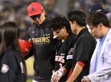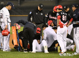 1루에서 충돌한 김선빈 '결국은 교체'[포토]