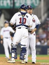 투수교체 위해 직접 마운드 오른 김태형 감독[포토]
