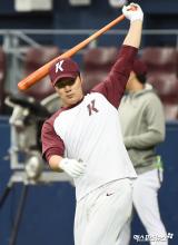 투수조 스트레칭을 바라보는 김용일 코치[포토]