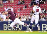베이스 밟고 미끌어지는 요키시[포토]