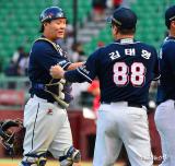 김태형 감독 '박세혁 수고했어'[포토]