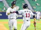 박세혁 '허경민과 하이파이브'[포토]