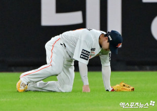 이진영 ‘아쉬웠던 수비 장면'[포토]
