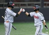정주현 '홍창기와 주먹을 맞대고'[포토]