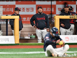 전민재 ‘런다운에 걸렸어’[포토]