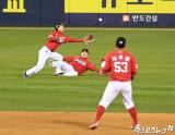 김성현-최지훈 '조심해'[포토]