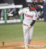 홍창기 '플라이 타구에 배트 던지며'[포토]