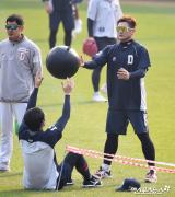 허경민-최주환 '짐볼 이용한 훈련'[포토]
