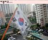 초등학교 1학년의 태극기, 비 맞을까봐 정성스럽게 보호