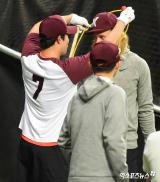 김하성 '모터에게 고무줄 목걸이 선물'[포토]