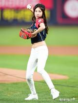 [엑's HD] 가수 유리 '배꼽 드러내고 시구'