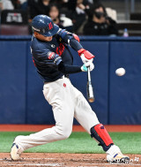 윤동희 ‘타이밍은 좋은데’[포토]