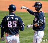박건우 '양석환 좋았어'[포토]