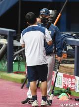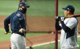 이동욱 감독 '나성범과 이야기 나누며'[포토]