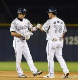 조수행 '8회말 선취 득점에 주먹 불끈'[포토]