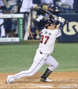 박건우 '초구 받아쳐 동점 2타점 적시타'[포토]
