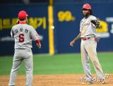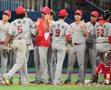 '선수들과 하이파이브 하는 SK 김용희 감독'[포토]