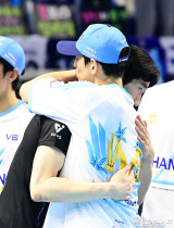 대한항공 축하하는 현대캐피탈 선수들[포토]