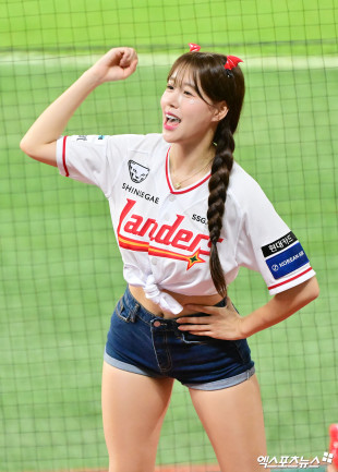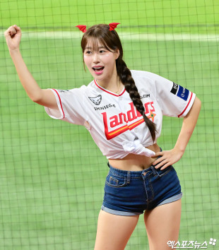 치어리더 김도아, 셔츠 벗고 혀끝 퍼포먼스…야구장 술렁