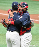 최준용-유강남 ‘뜨거운 포옹’[포토]