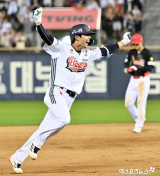 이유찬 ‘데뷔 첫 끝내기’[포토]