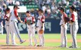 이동현 '마지막 투구 마친 뒤 동료들과 나누는 악수'[포토]